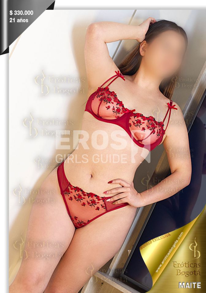 MAITE, a natural escort in Bogotá, is undoubtedly a true princess… a vision that captivates from the very first moment. Her face awakens an enchanting innocence, the kind that melts away defenses, but her body tells a completely different story: a passionate, fiery tale brimming with desire. Just watching her walk is enough to understand; every step she takes is a silent invitation that ignites anyone's imagination.