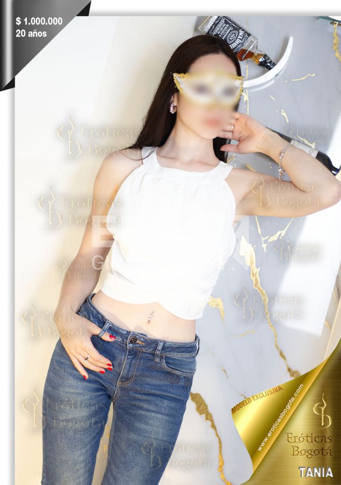 TANIA es una escort VIP en Bogotá de 1,70 m de estatura, con una presencia sofisticada que no pasa desapercibida. Con su piel blanca, ojos café profundos y cabello castaño largo, su rostro de muñeca consentida, su busto firme y cola parada refleja su elegancia natural. Es modelo profesional y se caracteriza por su estilo casual pero siempre elegante, eligiendo prendas que resaltan su figura y su gusto por lo refinado.